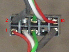La numeración de los pines viene indicada en las imágenes mostradas arriba (en color rojo), el pin 1 es el de la esquina inferior izquierda, pin 2 esquina superior izquierda, pin 9 esquina inferior derecha y pin 10 esquina superior derecha. Para numerar los cables/conector lo hacemos viéndolo desde la parte posterior, es decir como lo vemos al conectarlo (ver imágen), para hacer que la numeración coindida con la de la tarjeta madre.
